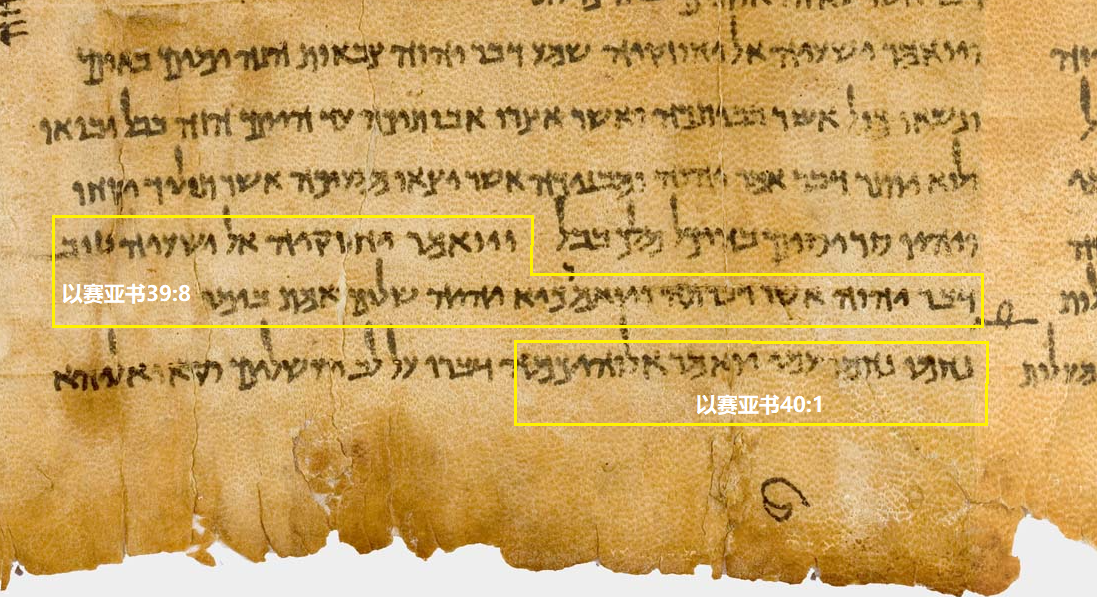 - 在死海古卷的《以赛亚书》里,四十1与三十九8连在一起,审判(三十九5-7)与安慰(四十1-2)之间并无间隔——神一面宣告审判,一面赐下安慰;审判由一人发出(三十九5),安慰却将由一群人进行(1、3、6、9节);审判是临到一个国家(三十九6-7),安慰却将遍及全地(四十二1)。虽然神的百姓悖逆、失败、被掳,但无论人怎样背信,神还是「你们的神」(1节),这个事实从神拣选的那一刻起就永不改变。所以安慰超越了定罪,恩典超越了失败。